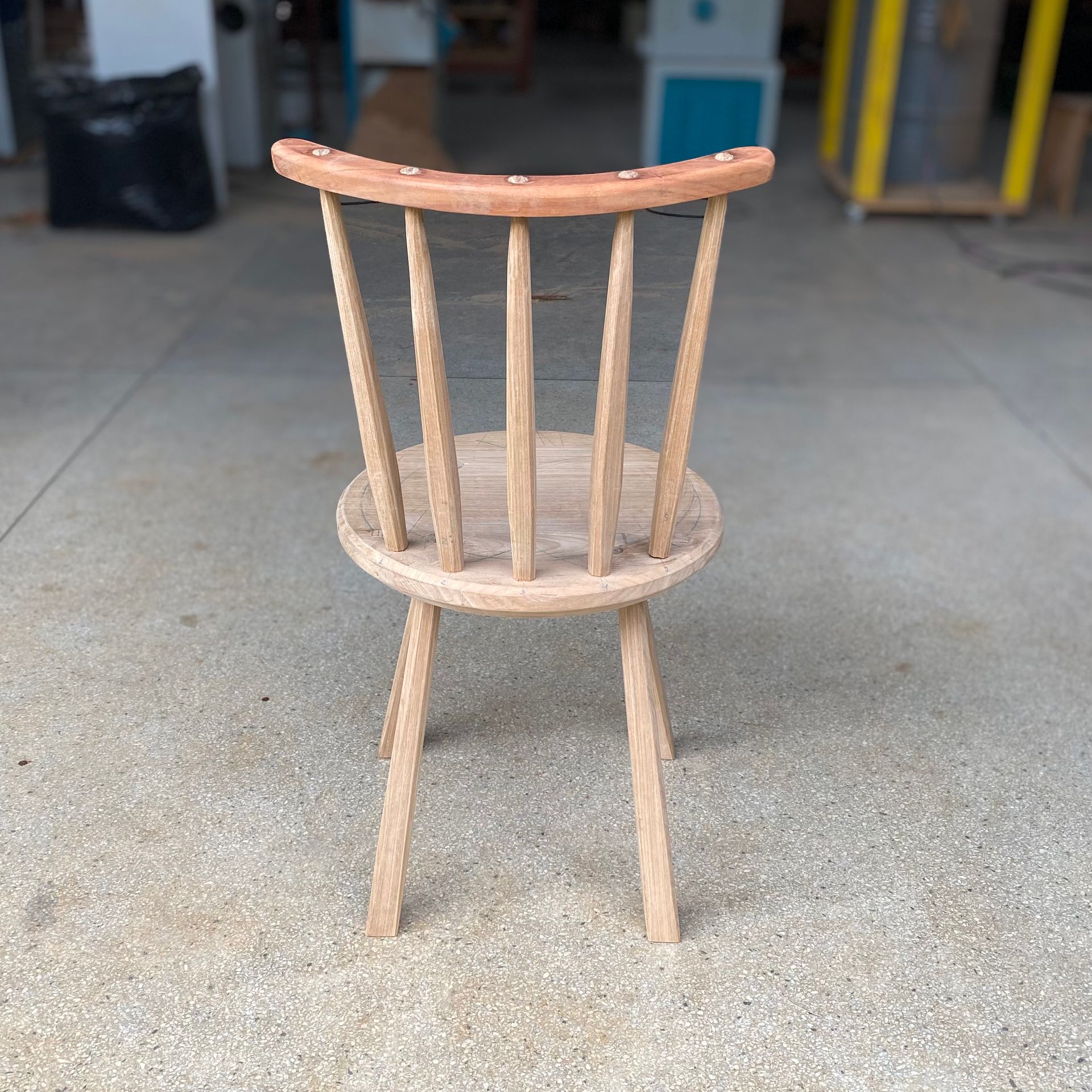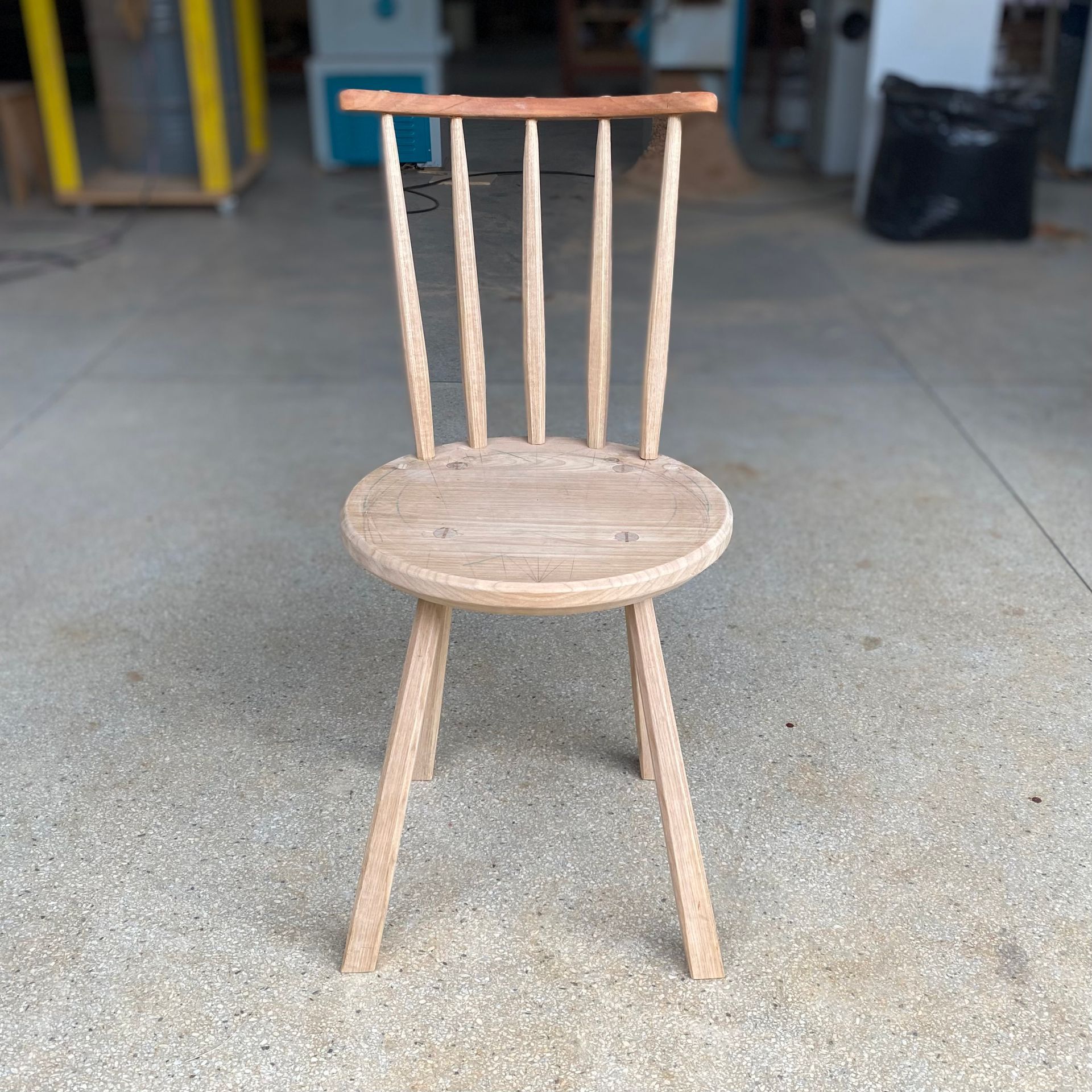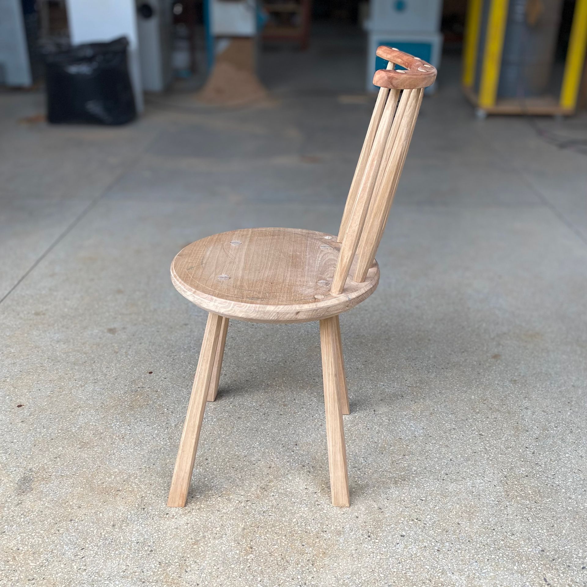 Nesta cadeira eu consegui atender ao pedido do assento redondo, linhas mais leves, não tão visíveis por ser um protótipo e de simples execução para replicar 8 vezes para a mesa de jantar do cliente.